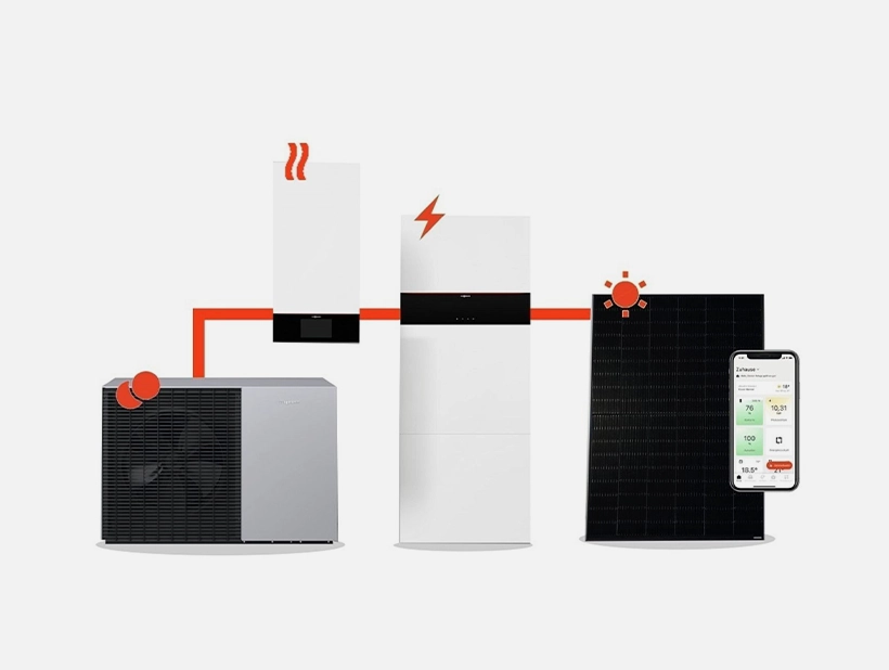 L’application ViCare vous permet, quant à elle, de piloter à distance votre installation pour choisir notamment le niveau de confort thermique souhaité et d’afficher en temps réel les flux d’énergie de votre logement.